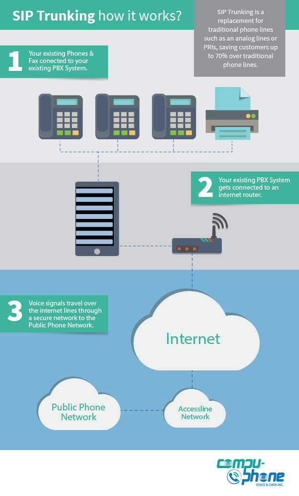 A single group of SIP lines can branch out over several customer locations. Since all originate in the cloud and do not physically reside at each individual location, multiple company offices can share the same phone lines.